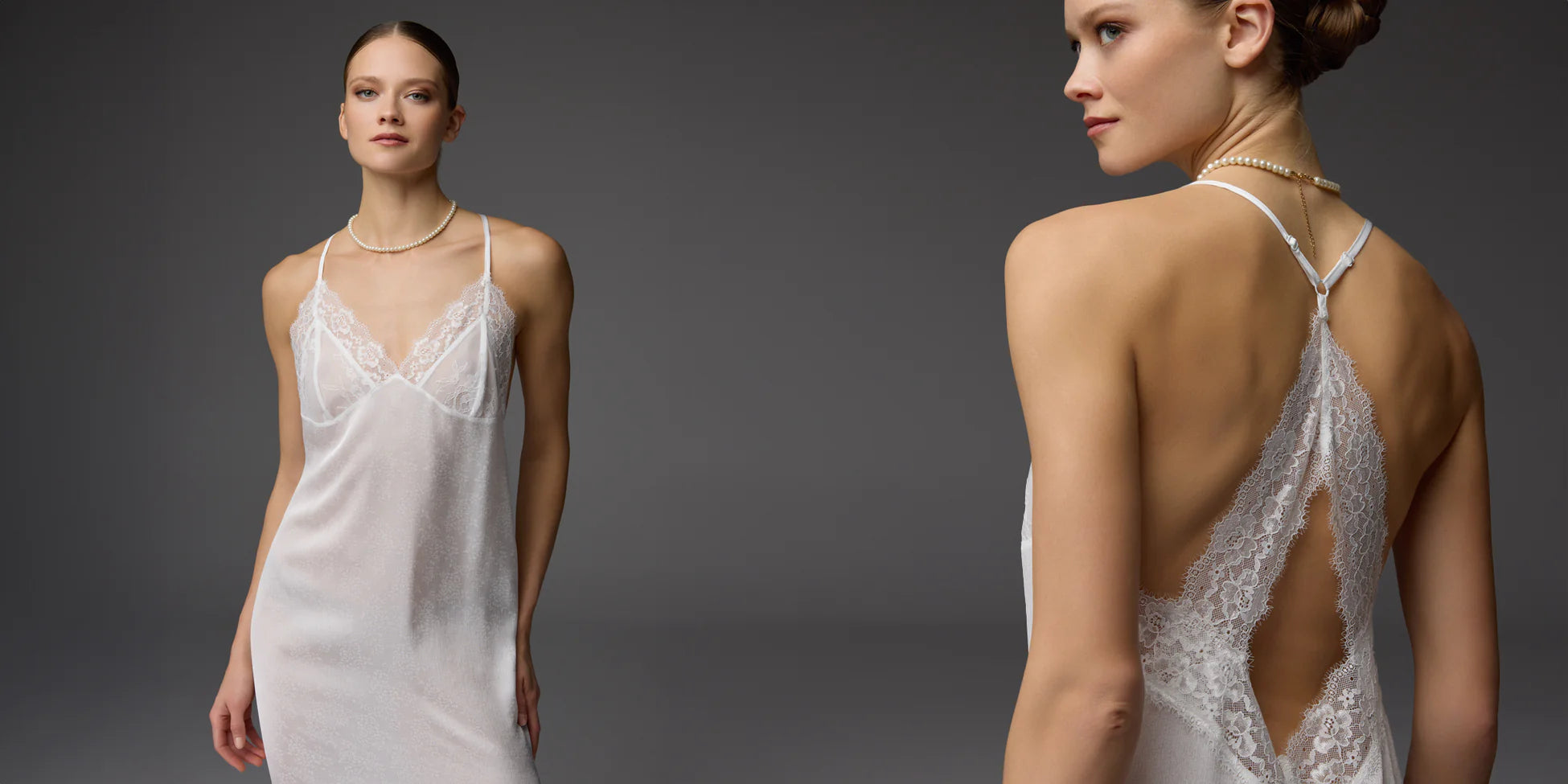 Discover the bridal collection crafted with lace, tulle and guipuredetails.